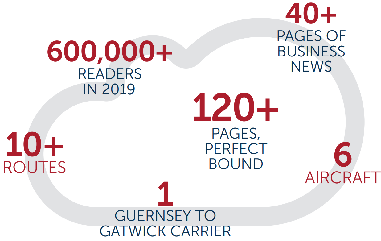 The magazine is distributed on all Aurigny flights, arrival areas, online and from branded stands at Guernsey’s passenger lounges and security gates. It is also distributed in hotels and other high footfall locations across the island.